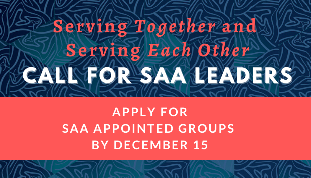 For the 2022 appointments cycle, there are more than 80 positions to be filled across SAA’s 25+ appointed groups, which include boards, committees, subcommittees, task forces, and working groups. Review the list of available positions below and choose up to five groups for which you feel interested and compelled to serve. Then, submit your leadership self-nomination form by December 15, 2021.